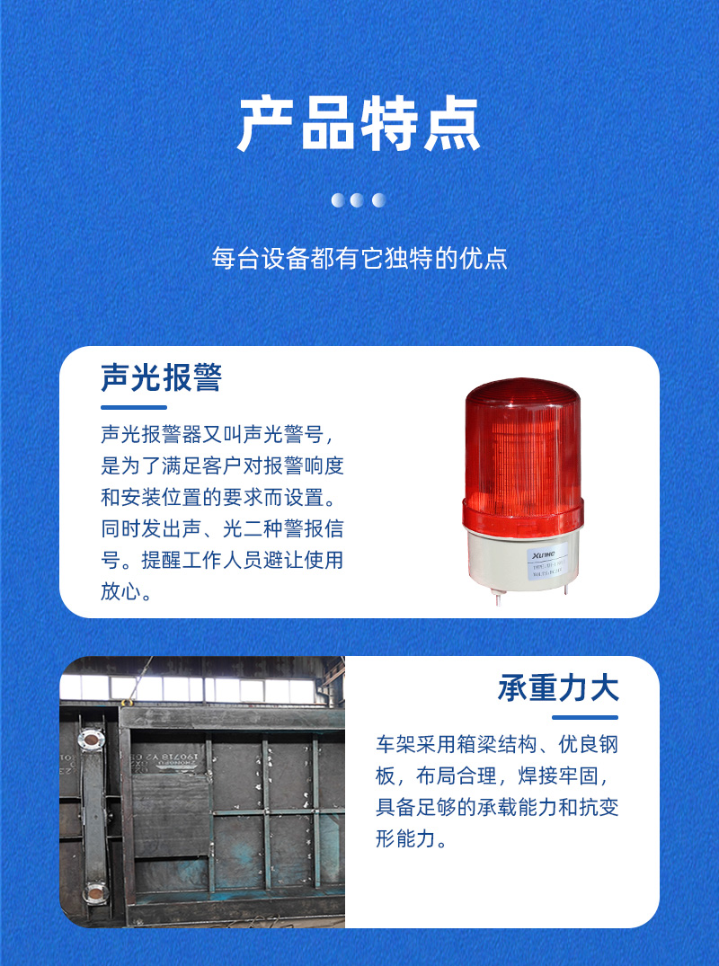 公司保障:電動(dòng)平車、軌道平車的承重安全系數(shù)不低于60%
