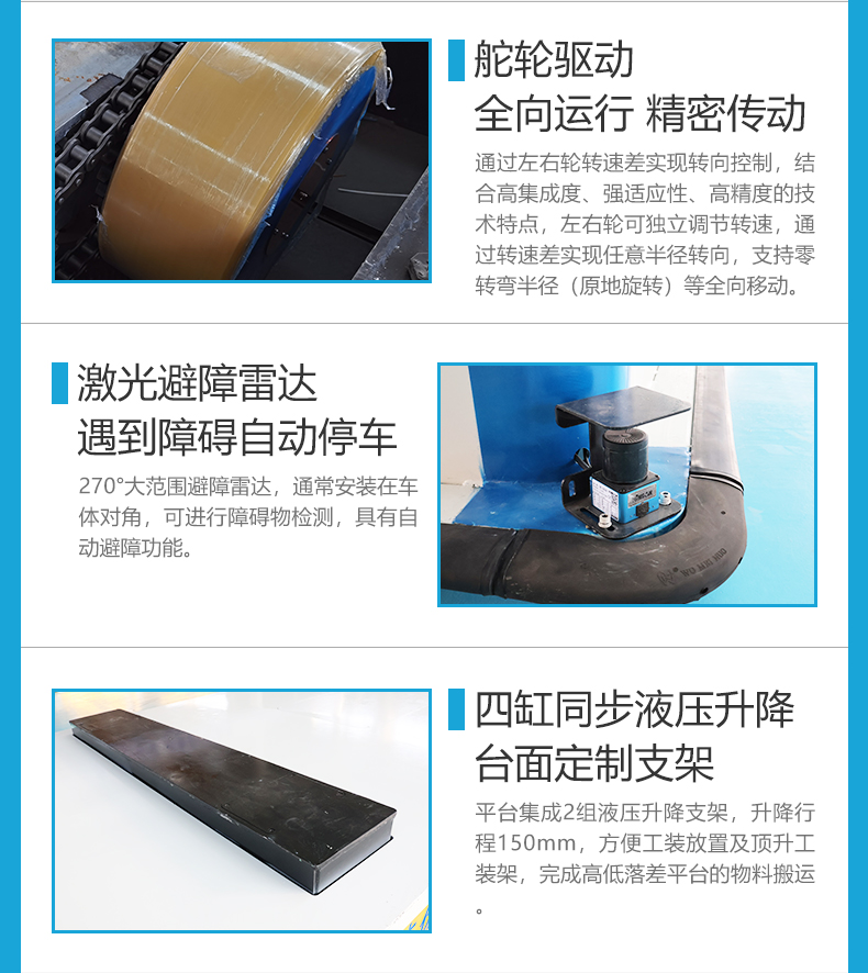 熱線:15517329551 專為涂裝線工件運輸定制的20噸重載AGV,采用磁條導航,按照預設路徑自動循跡行走,設有4個站點自動識別***停靠,高配HMI人機交互大屏,手自動模式一鍵切換,輪組配備臥式舵輪,伺服電機+行星減速機傳動精密高效,可實現(xiàn)橫移、斜行、原地旋轉(zhuǎn)等全向移動,優(yōu)化運行路徑減少等待時間,臺面設置兩組液壓升降支架150mm行程方便工件裝卸,鋰電池供電抽拉式電池箱,一主一備快速更換,全天8小時連續(xù)作業(yè)不停機,對角雷達避障、四周觸邊防撞、聲光報警、急停按鈕全方位守護運行安全!