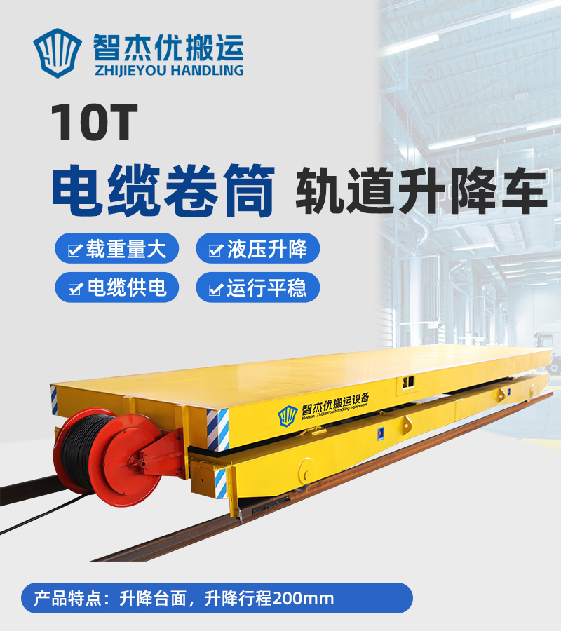 熱線:15517329551 智杰優(yōu)搬運為鋼結(jié)構(gòu)加工企業(yè)定制的電纜卷筒軌道升降車,整車長8米寬2.1米高0.7米載重10噸,主要用于車間生產(chǎn)線之間鋼材原料的運輸作業(yè),平車設(shè)有升降裝置可根據(jù)需求調(diào)整載貨平臺高度,升降行程200mm,適應(yīng)不同高度的裝卸作業(yè),增加了設(shè)備的靈活性,電纜卷筒供電,卷筒自動收放電纜線避免纏繞和損壞延長了電纜的使用壽命,同時也保證了供電的穩(wěn)定性,線控手柄操作平車前進后退簡單方便,雙組行程開關(guān)可實現(xiàn)起始終點定點??俊?/span>