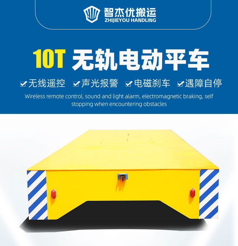 描   述: 10噸無軌電動平車 內置電池、無須電纜、箱梁結構、承重力大、激光感應、遇障自停。