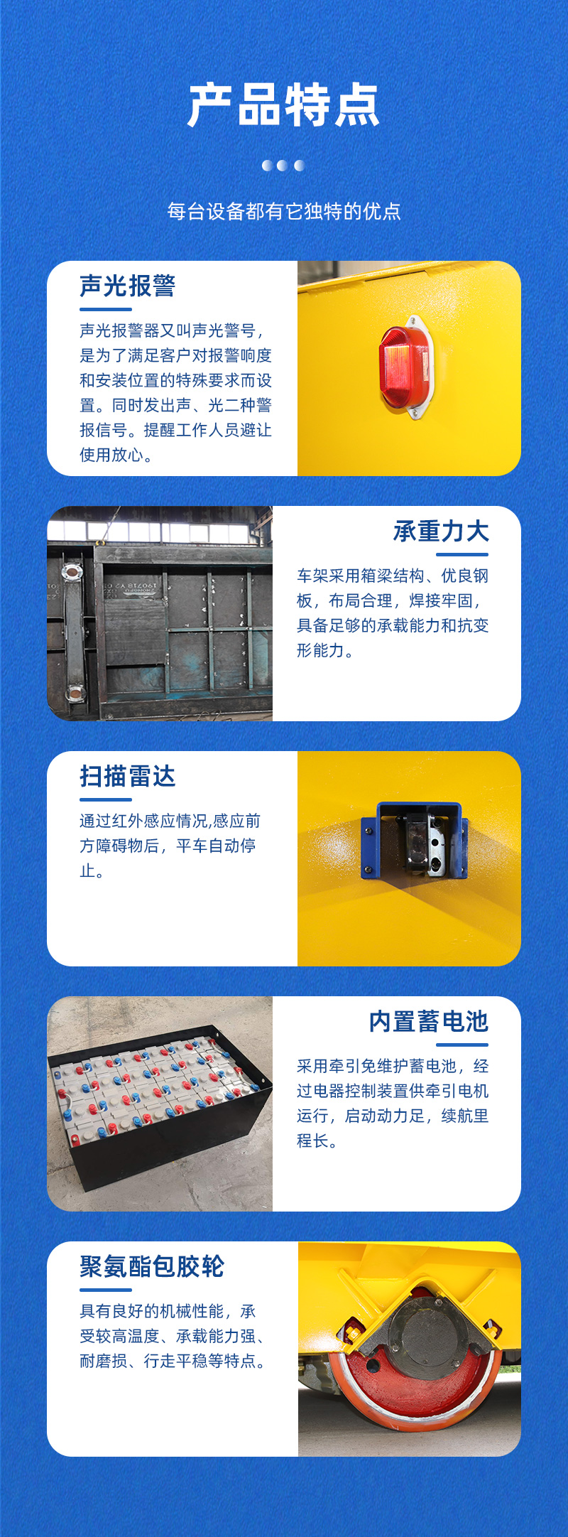 公司保障:電動(dòng)平車、軌道平車的承重安全系數(shù)不低于60%