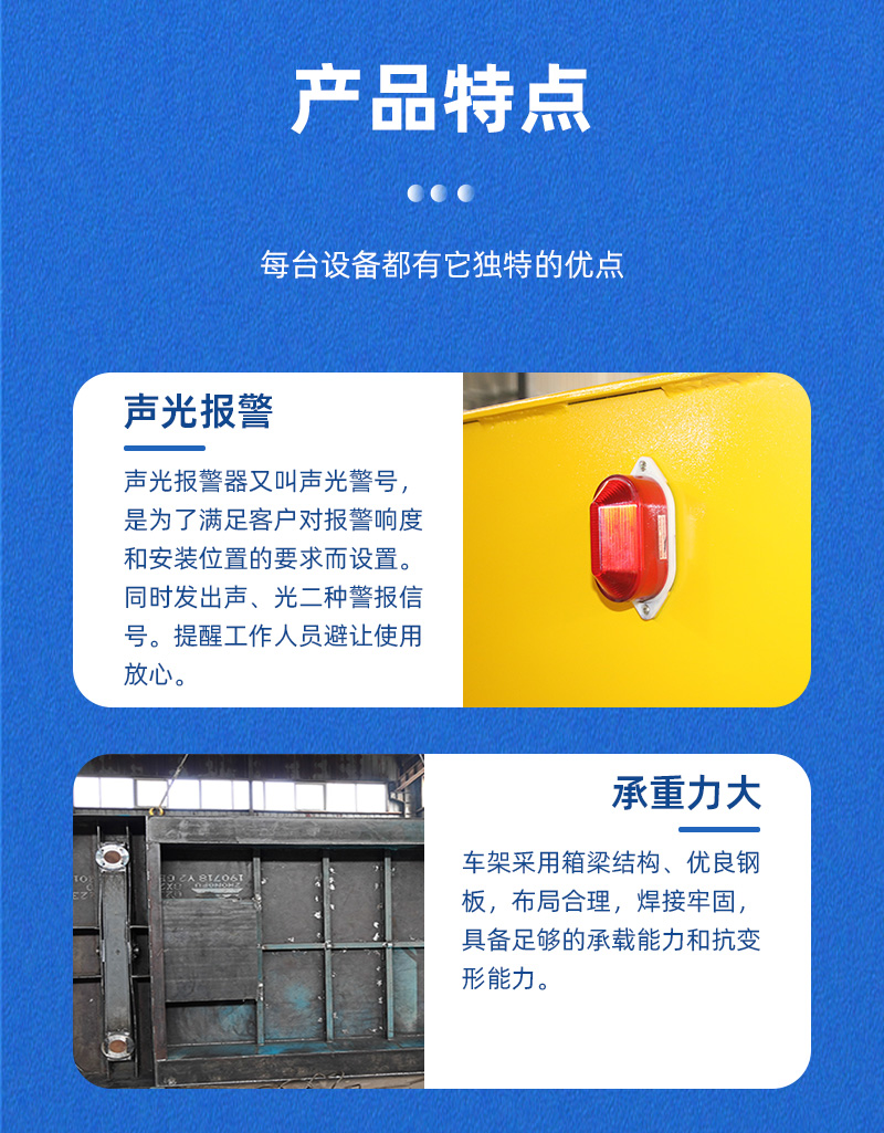公司保障:電動平車、軌道平車的承重安全系數(shù)不低于60%