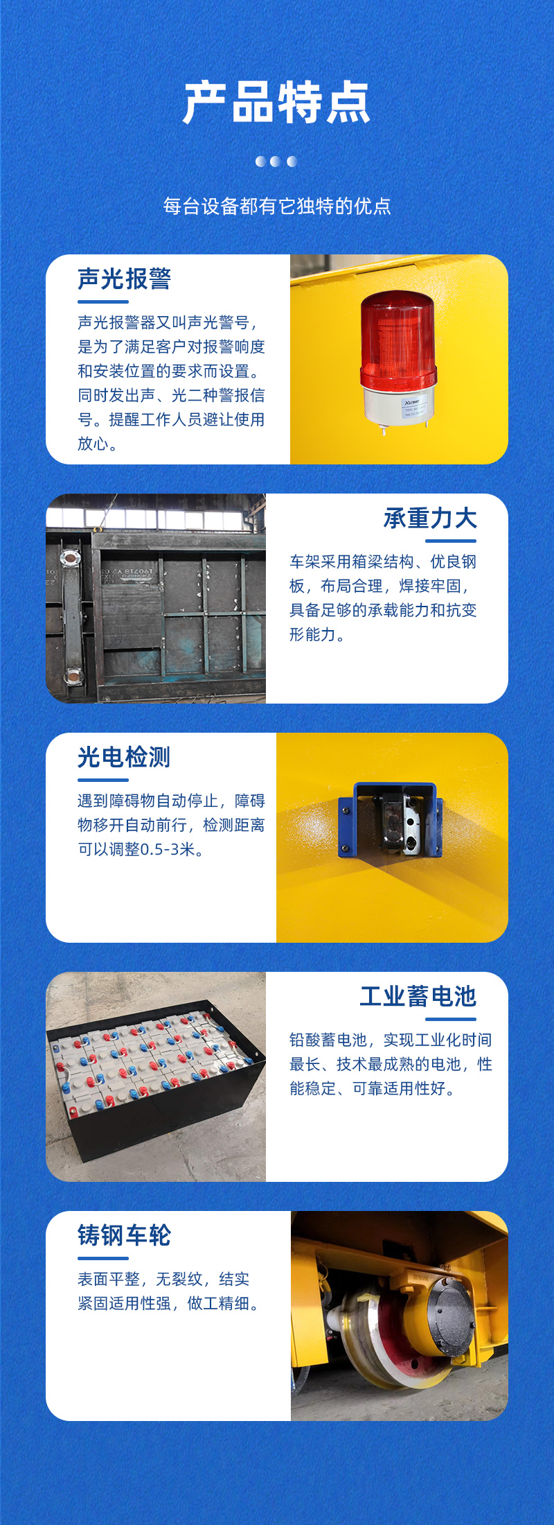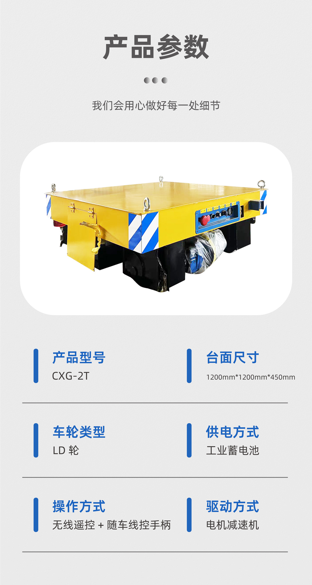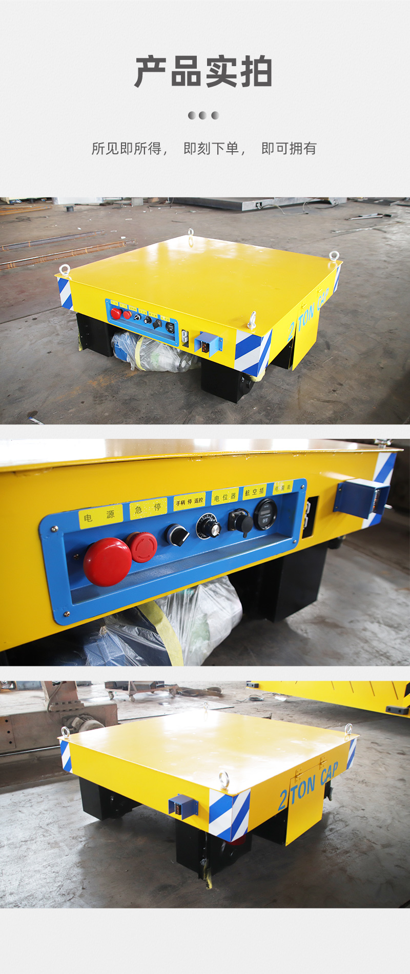 這是一臺(tái)小型軌道搬運(yùn)車載重試機(jī)現(xiàn)場,整車長1.2米寬1.2米高0.45米載重2噸,箱梁結(jié)構(gòu)穩(wěn)定牢固,不易變形;無線遙控平車前進(jìn)后退,采用鑄鋼車輪,硬度高耐磨損承重力強(qiáng),電機(jī)減速機(jī)驅(qū)動(dòng)平車進(jìn)行搬運(yùn)作業(yè),限位開關(guān)可實(shí)現(xiàn)平車定點(diǎn)??孔鳂I(yè),前后配備光電檢測遇障自停,聲光報(bào)警保障安全,該系列電動(dòng)平車還可進(jìn)行功能升級(jí)、升降臺(tái)面、弧形軌道運(yùn)行等。