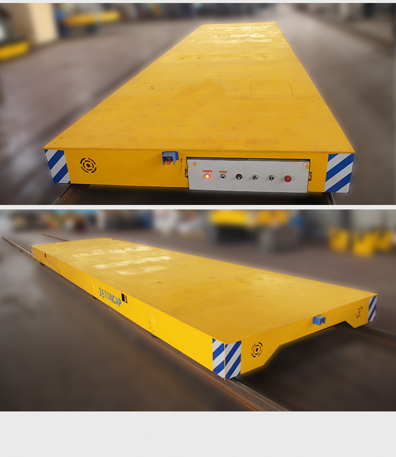 描   述: 這是一款拖電纜軌道電動平板車,該車長8米、寬2米、高0.35米,采用電纜供電,使用時間不受限制。底盤箱型梁焊接可承重35噸,鑄鋼車輪結(jié)實耐用,平臺高度低行走平穩(wěn),不易側(cè)翻貨物,無線遙控操作簡單,速度可人工調(diào)節(jié),適合不同場合下使用。聲光報警時刻提醒現(xiàn)場人員注意避讓,保障作業(yè)安全。