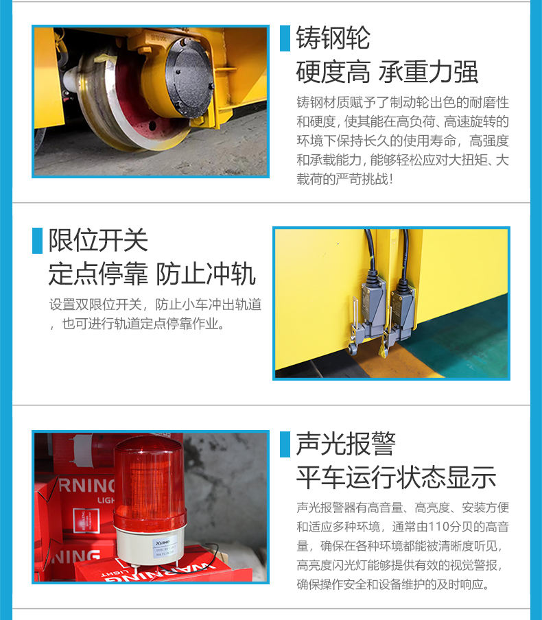 公司保障:電動平車、軌道平車的承重安全系數(shù)不低于60%