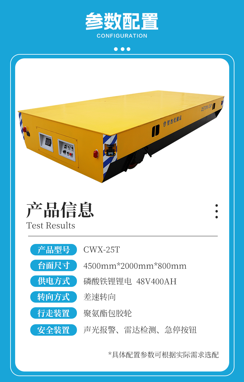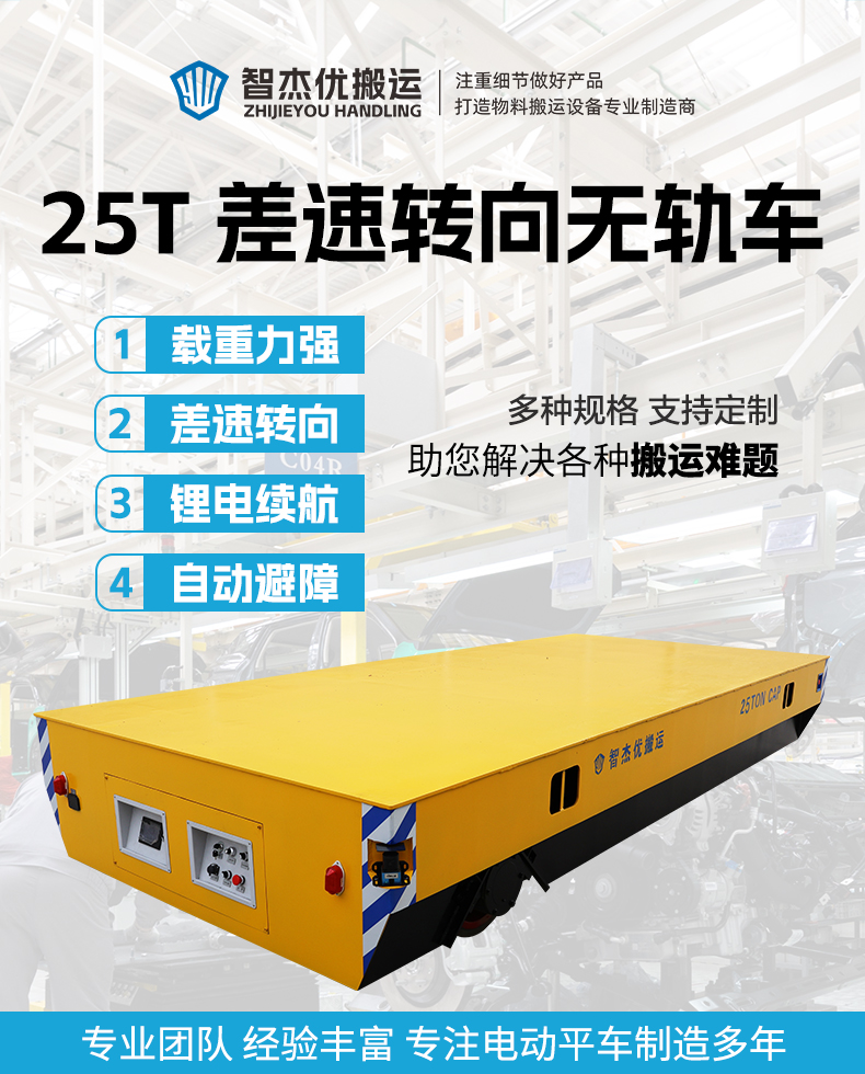 描   述: 25噸蓄電池差速轉(zhuǎn)向無軌轉(zhuǎn)運車,搭載48V400安時大容量鋰電池組,續(xù)航持久滿足長時間作業(yè)需求,差速轉(zhuǎn)向轉(zhuǎn)彎靈活可進(jìn)行極小半徑原地旋轉(zhuǎn),對角安裝270°大范圍雷達(dá)避障檢測到障礙物立即停車,為重型機械制造車間物料轉(zhuǎn)運、模具運輸、零部件配送等工業(yè)環(huán)境提供穩(wěn)定承載與安全轉(zhuǎn)運解決方案!