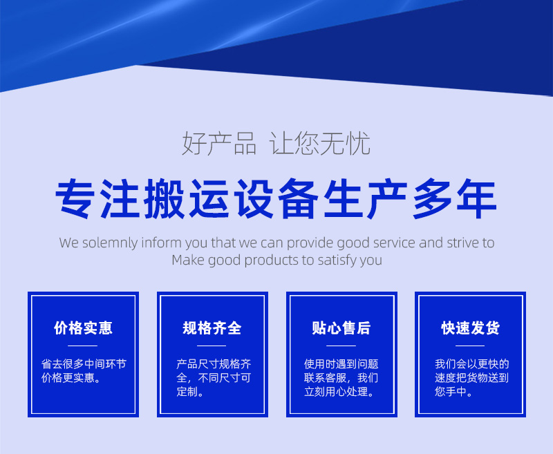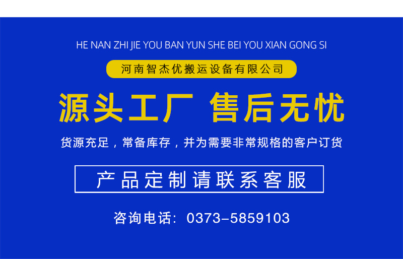 河南智杰優(yōu)搬運(yùn)設(shè)備有限公司以“質(zhì)量取勝,服務(wù)取勝”的經(jīng)營理念,為了客戶的利益,公司建立了一整套快速的質(zhì)量信