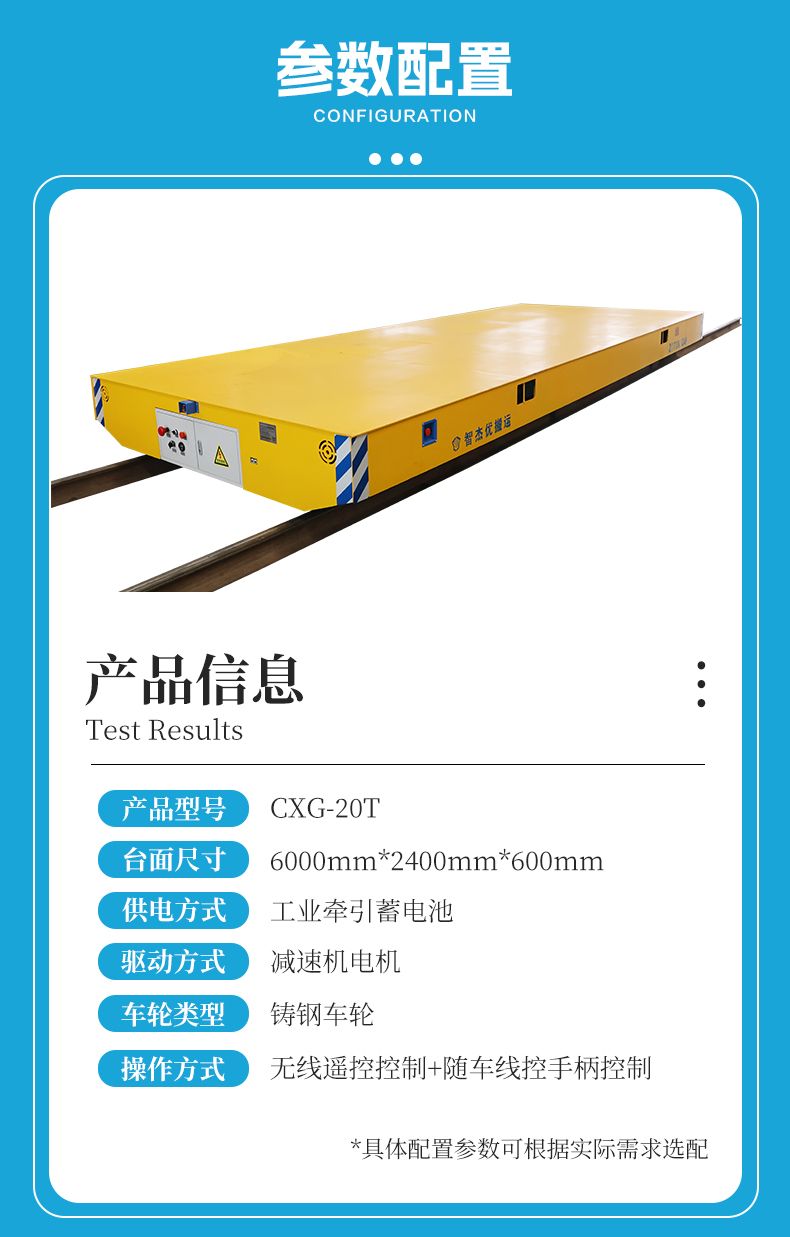 描   述: 20噸蓄電池軌道電動平車,6米*2.4米平臺設(shè)計(jì) 0.6米低重心,加厚鋼結(jié)構(gòu)框架,運(yùn)行平順不側(cè)傾,保障貨物安全。搭載工業(yè)級牽引蓄電池,滿載狀態(tài)下運(yùn)行時間不低于6小時,滿足高強(qiáng)度作業(yè)需求,0-20m/min無級變速,電機(jī)減速機(jī)驅(qū)動系統(tǒng),啟停平穩(wěn)無沖擊,配合電磁剎車系統(tǒng),***制動防溜車,固定軌道運(yùn)行避免人工駕駛偏差,降低操作難度,配備無線遙控、線控手柄雙種操控模式,一人即可完成復(fù)雜運(yùn)輸任務(wù)。