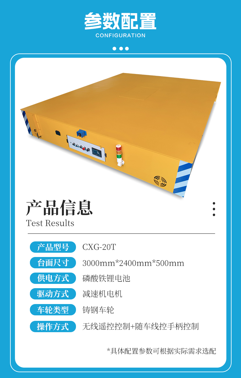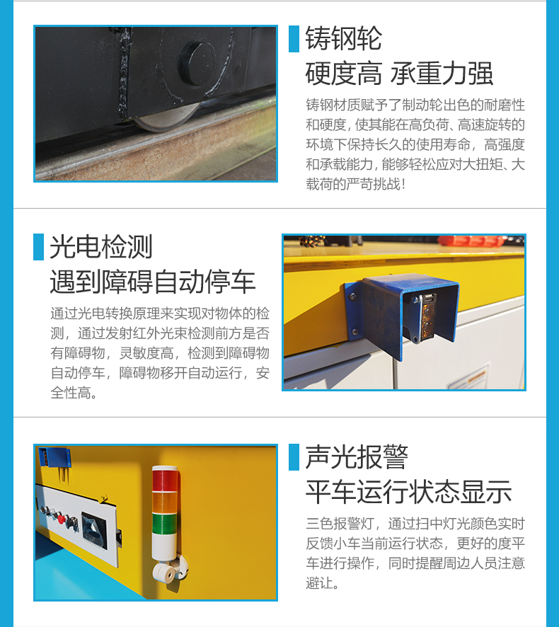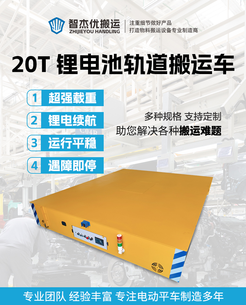 描   述: 鋰電池軌道電動(dòng)搬運(yùn)車,長(zhǎng)3米寬2.4米穩(wěn)穩(wěn)當(dāng)當(dāng)大平臺(tái),箱梁結(jié)構(gòu)鋼板焊接額定載荷20噸,載重運(yùn)行啟停平穩(wěn),無(wú)線遙控前進(jìn)后退、指令清晰響應(yīng)迅速,0-25m/min無(wú)極調(diào)速快慢自由掌握,電機(jī)減速機(jī)驅(qū)動(dòng)動(dòng)力強(qiáng)運(yùn)行穩(wěn),前后安裝光電檢測(cè)遇到障礙自動(dòng)停車,主動(dòng)預(yù)防碰撞安全省心,磷酸鐵鋰電池供電續(xù)航持久,室內(nèi)使用環(huán)保健康,無(wú)線遙控操作簡(jiǎn)單上手就會(huì),車間重型物料過(guò)跨就選它!